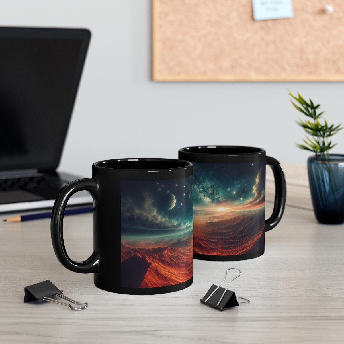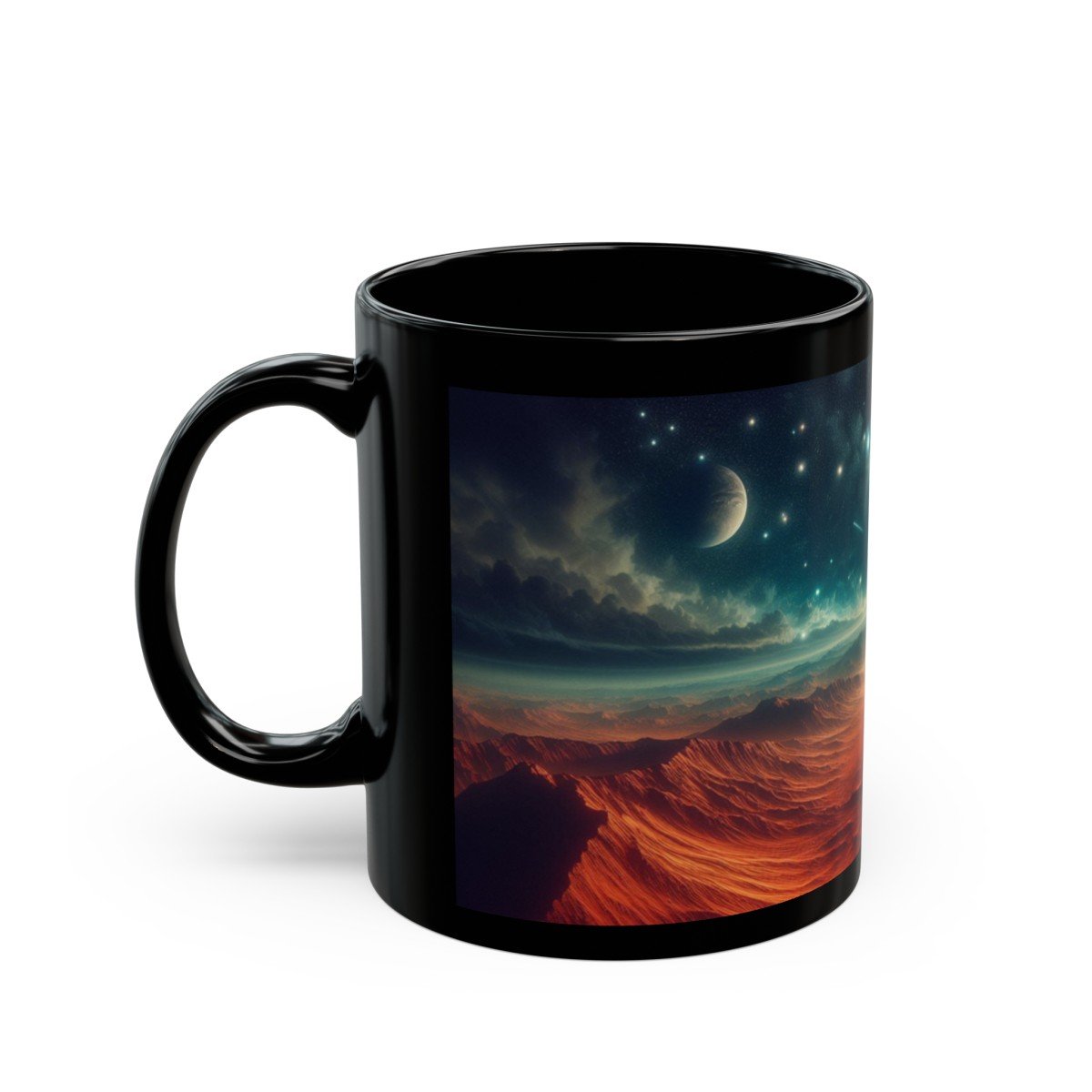 Sip Cosmic Inspiration! Start your day with a celestial twist! Our Mars-inspired coffee mug features a panoramic view of the Red Planet’s rugged surface, complete with Martian mountains and a sprinkling of distant stars. Whether you’re an astronomy enthusiast or simply love a good cup of joe, this mug will transport you to the mysterious landscapes of Mars.